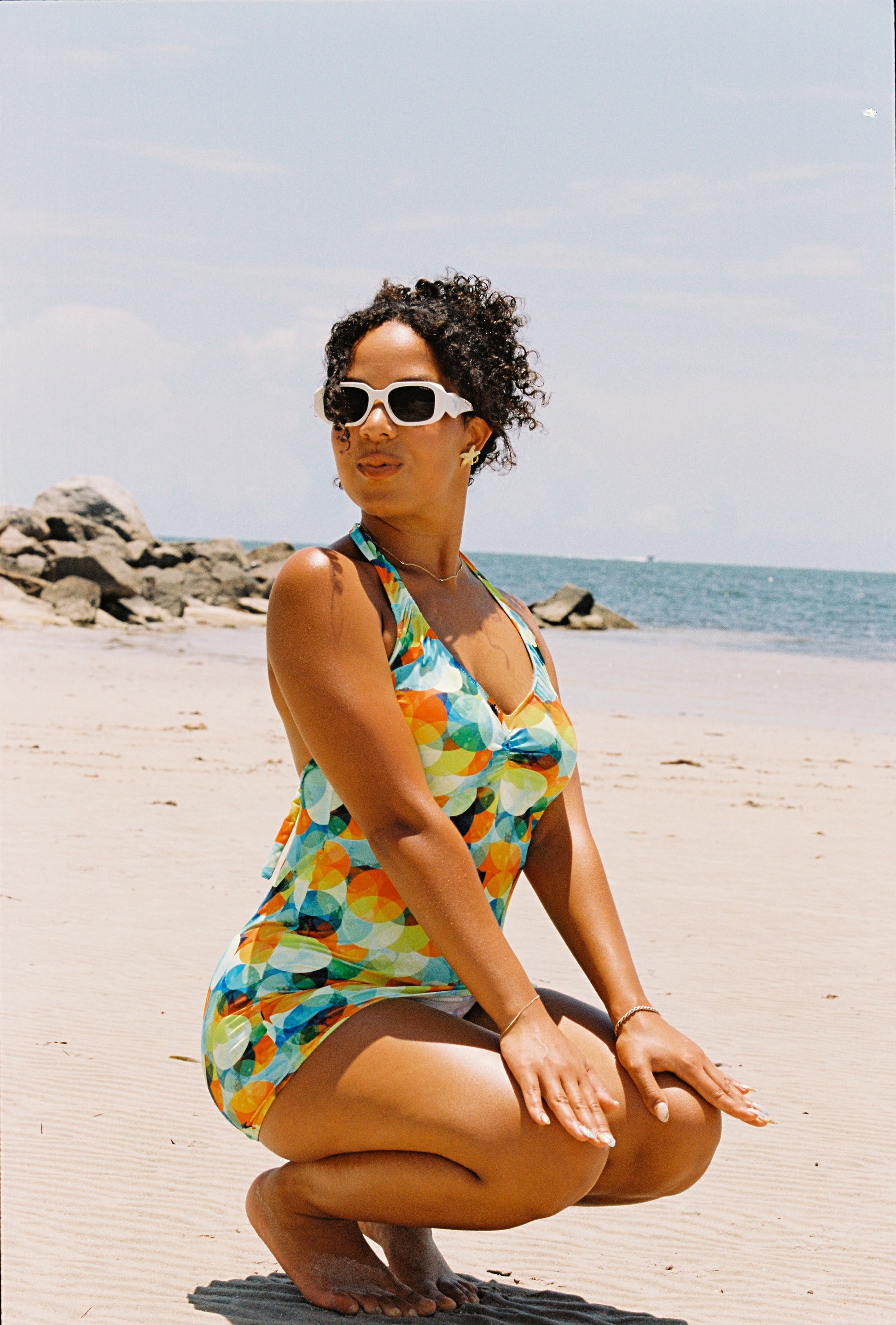 Bringing retro and classy back with this number- BAYONÉ's first ever swim dress is here in our vibrant print of the summer- CAPRINA. Designed with with a sweetheart neckline and mega flattering fit, this piece will be your sexy, go-to this summer!