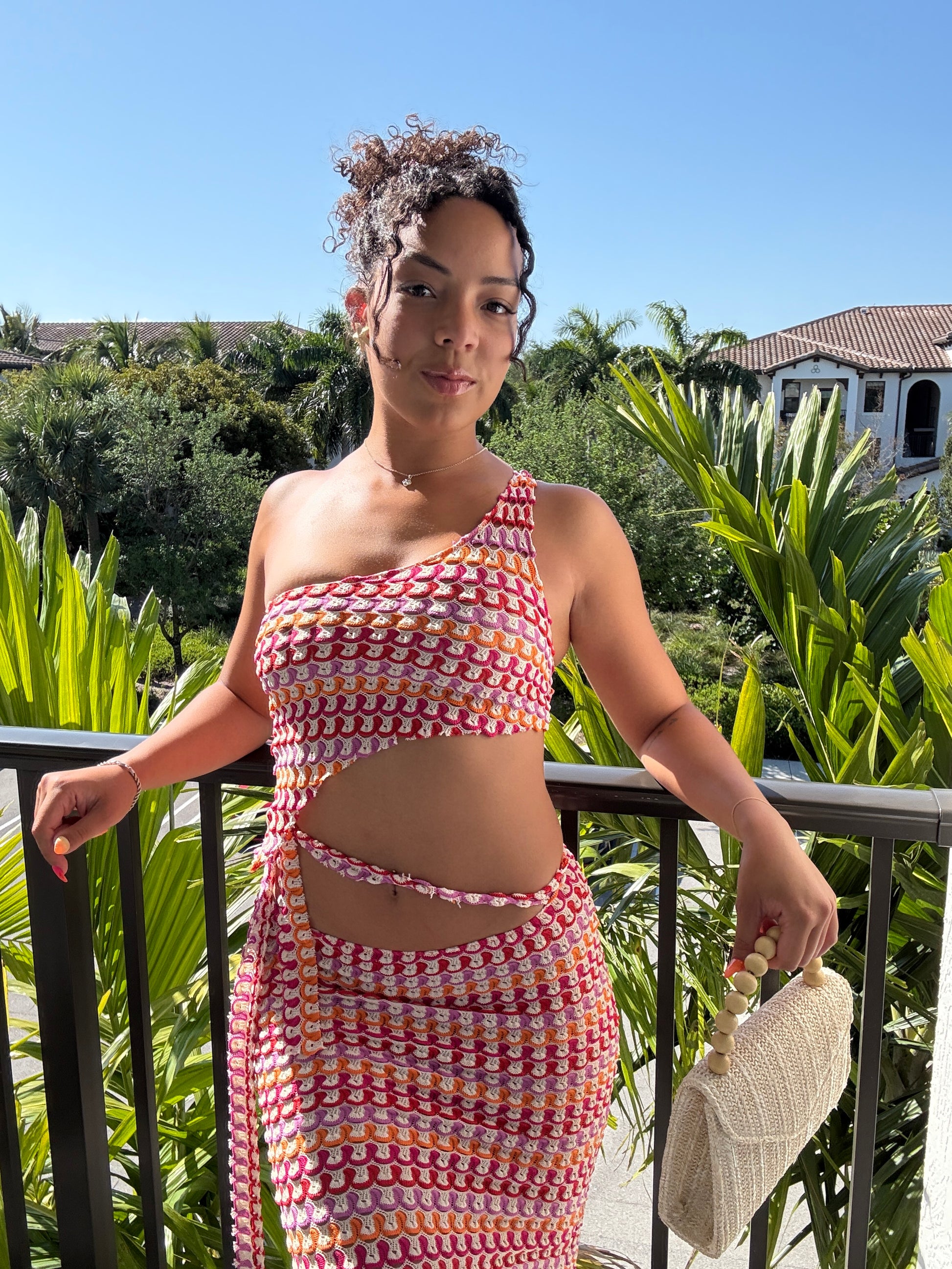 Our new fruitca matching set reminds us of the sweetest escape- breathable knitted fabric combining all our Sunrise in Paradise shades. Style her over your fav BAYONÉ kini during the day or post-sun to dinner and drinks at night!