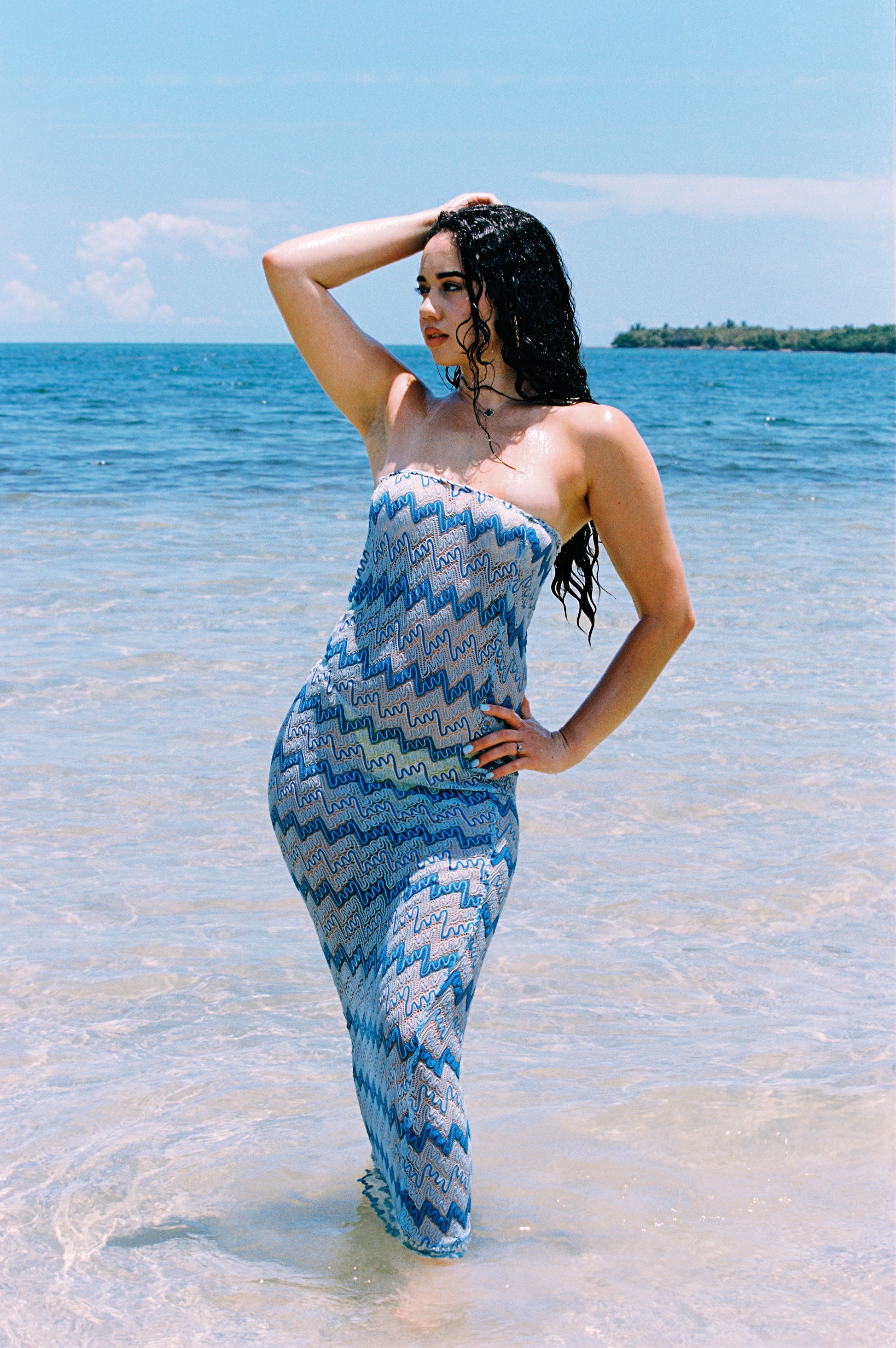 Whisk away in our Godess of Sea cover up dress. Crafted with novelty fabric imported from Turkey and made to highlight and hug your curves.